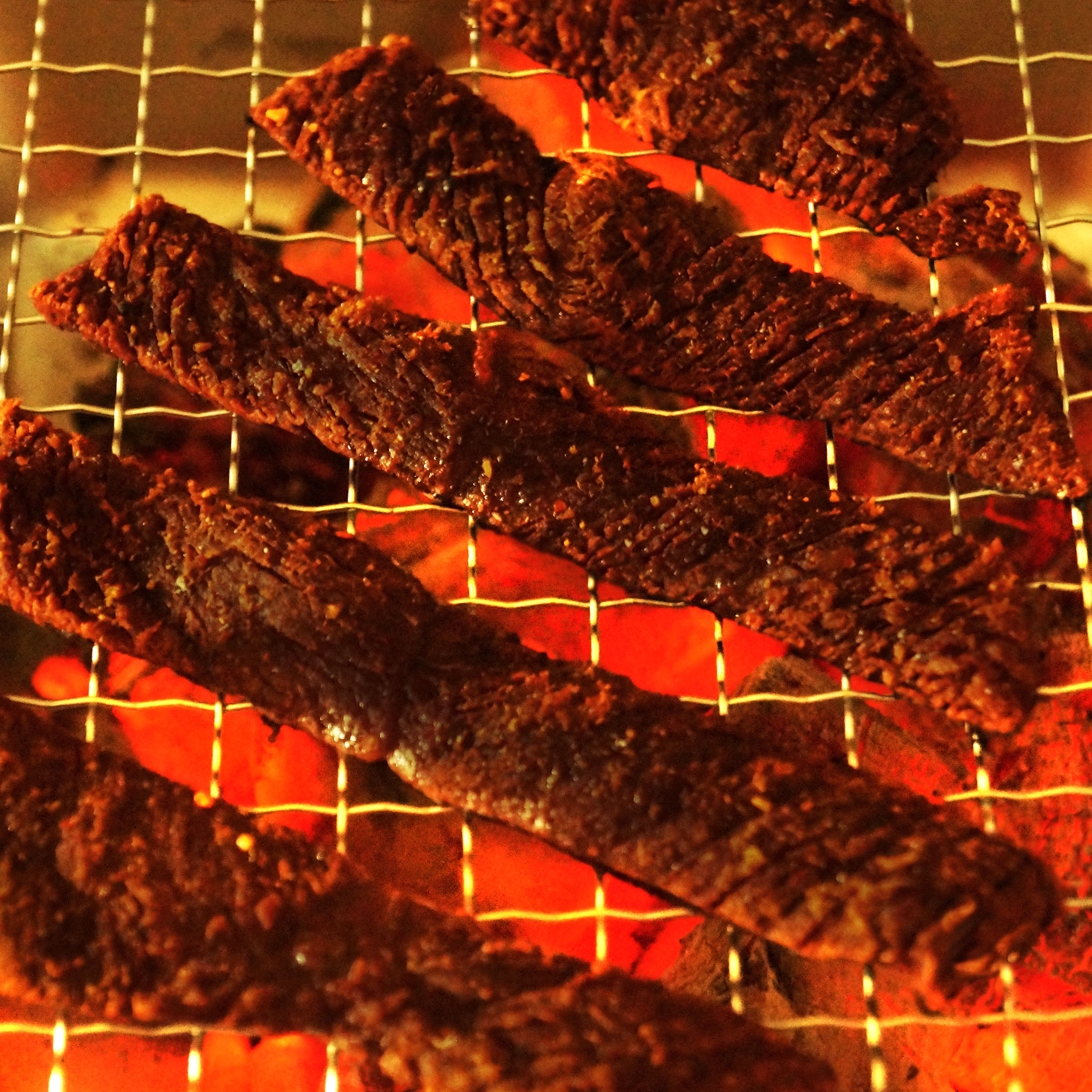 撒上香織堂特製燒肉香料粉,以中溫炭火或安全明火,適度灼燒肉片,燻炙香氣,待涼略乾爽後裝袋冷藏保存。需冷藏保存,並及早食用完畢,食用前回溫更美味。