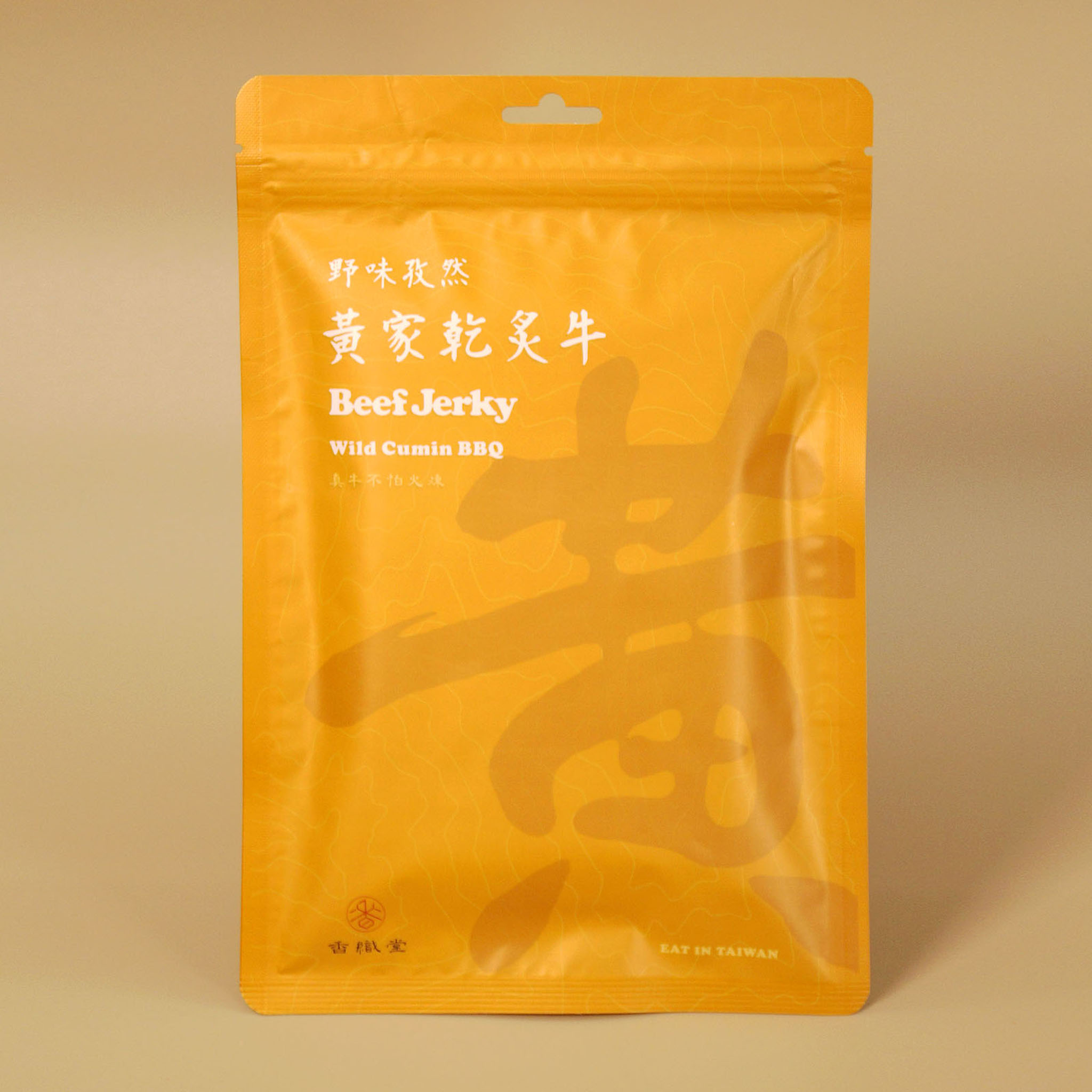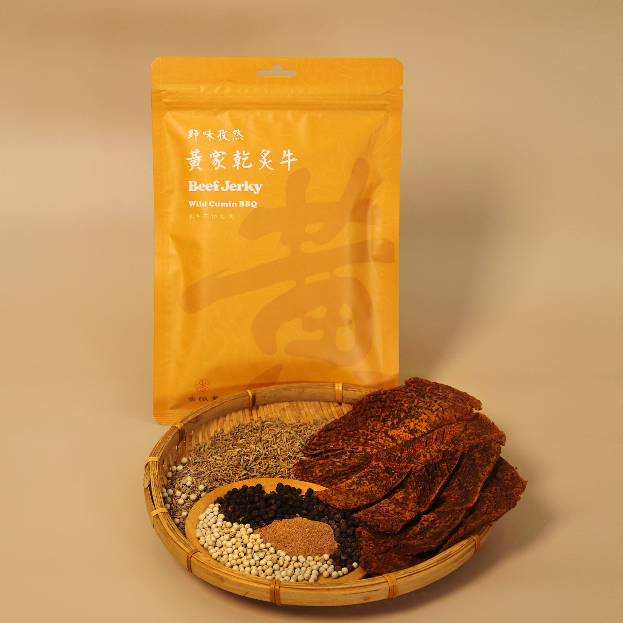 香織堂【黃家乾炙牛】野味孜然 牛肉乾條 - 以20種草木花果研磨香料與醇粹老醬,浸漬澳洲牛的肩胛里肌(俗稱黃瓜條),以多層次低溫乾炒入味,再文火燻炙賦予獨門香氣。